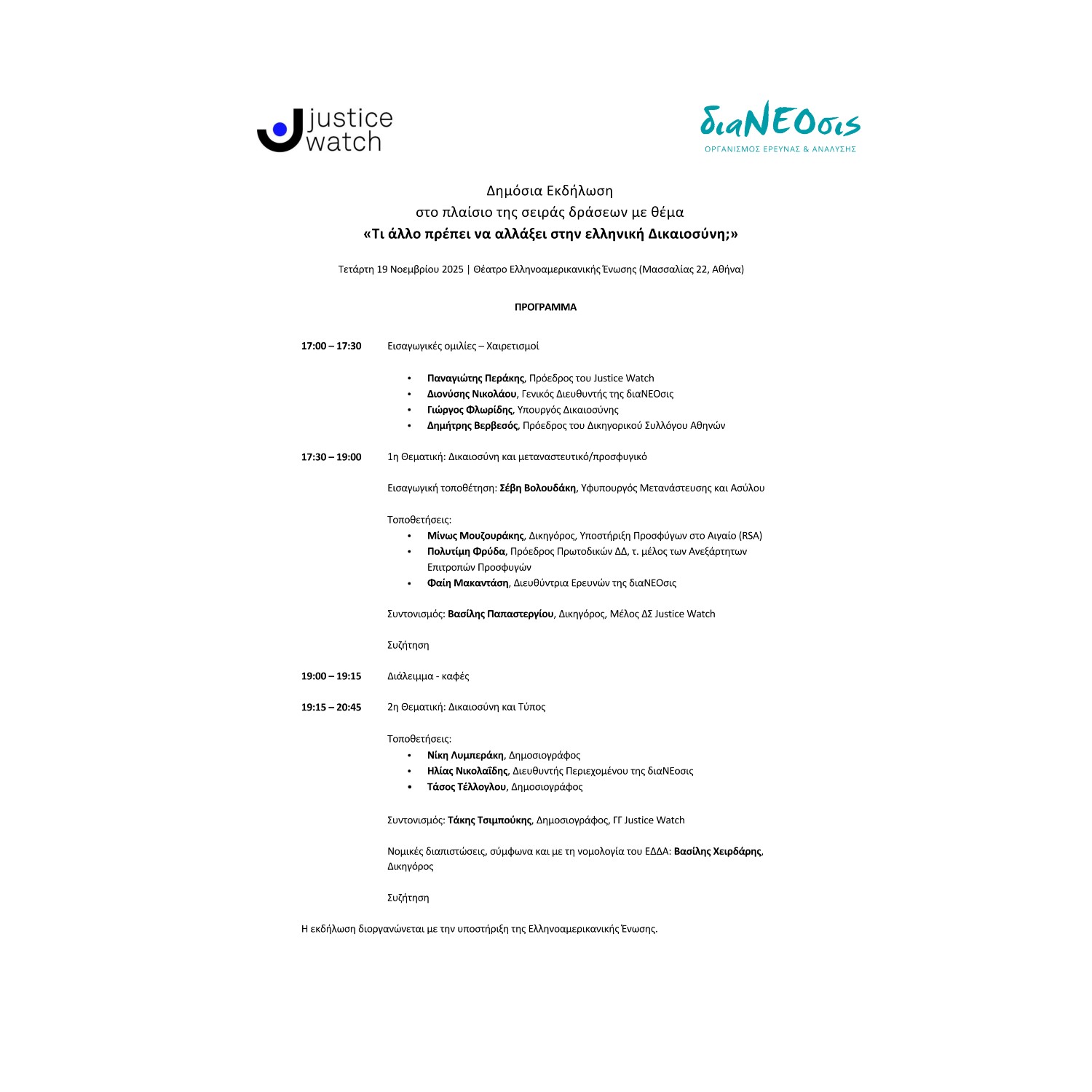 Συντονισμός: Τάκης Τσιμπούκης (Justice Watch)